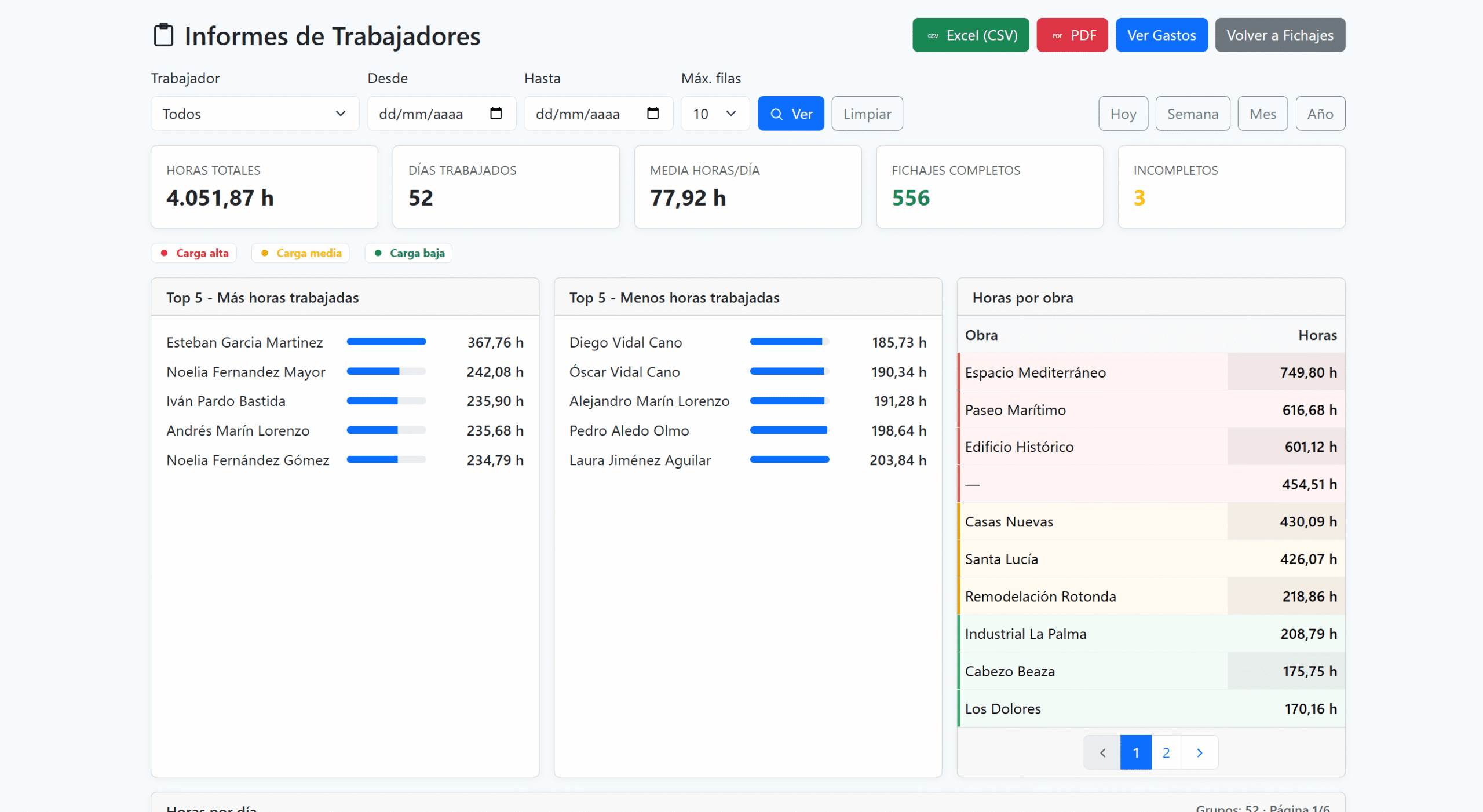 Sí. El visor permite filtrar por centro, obra o trabajador, adaptándose a cualquier tipo de empresa o estructura.
